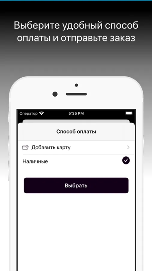 Выберите способ оплаты: Наличными, картой или картой курьеру. Примите правила оплаты и нажмите кнопку “Заказать”.