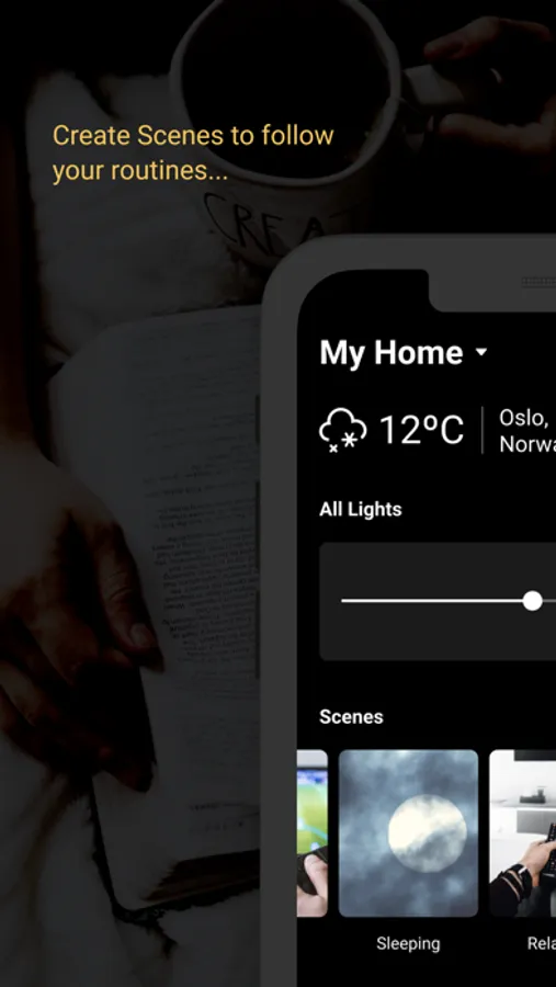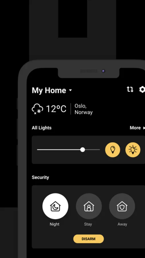 Use the Heimgard app to create the perfect atmosphere for any occasion. A warm and cozy setting for your evening dinner party, or a sharper and brighter setup for homework and home office during the day. Activate automatic light control in rooms such as bathrooms, hallways, and storage rooms. Set the temperature or optimize your indoor climate. Your heating devices can even be automatically turned off when ventilating.