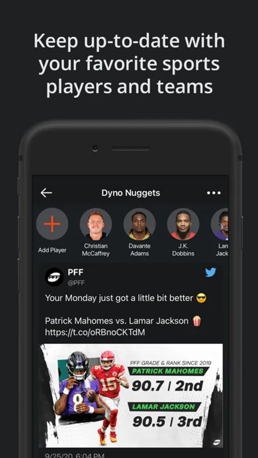 Customize rosters to receive information about the players and teams that matter most to you. Easily add or remove players and switch between rosters in the blink of an eye.