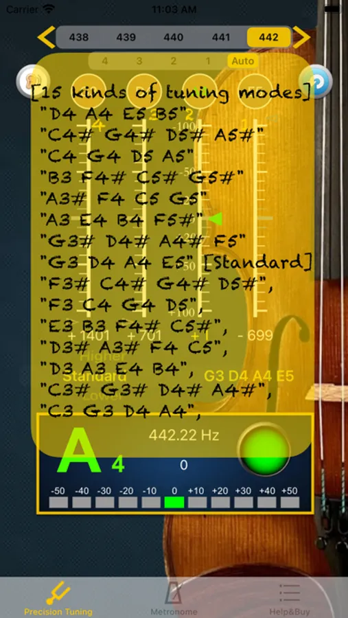 - A4 Frequency adjustment: choose 428~452 frequencies for A4 string.