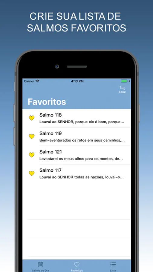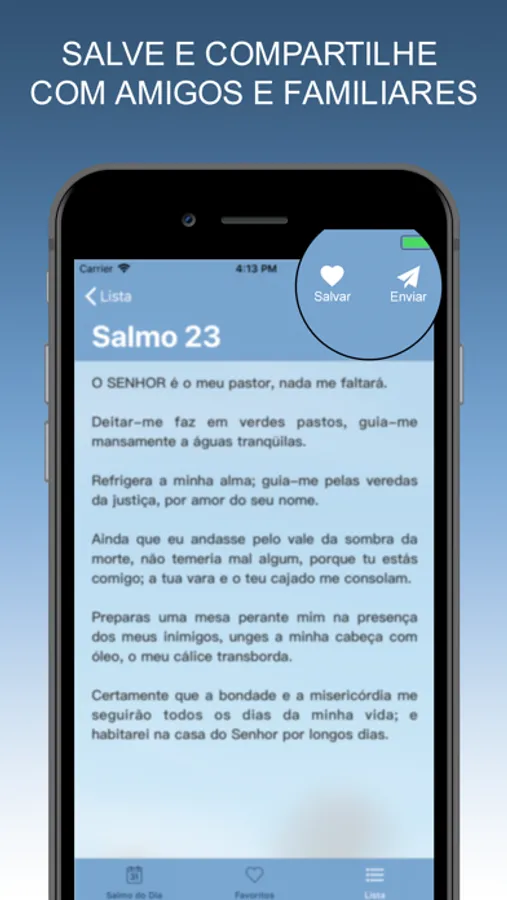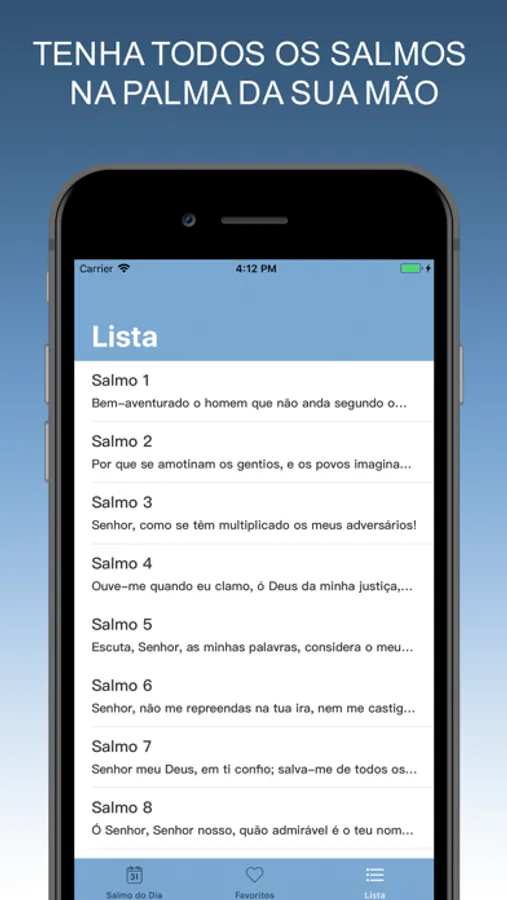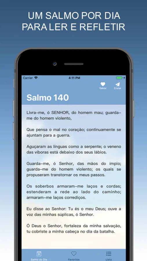 O aplicativo fornece o salmo do dia além de permitir que você mesmo crie sua lista de Salmos favoritos.