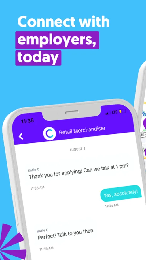 - Connect with employers right from your phone with integrated chat and video chat features.