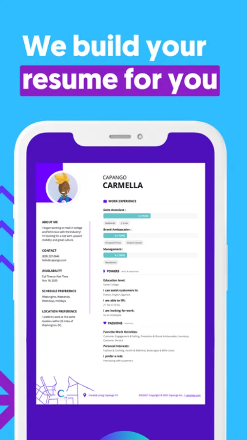 - Build a professional, downloadable resume for FREE with one-click Capango CV.