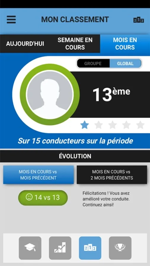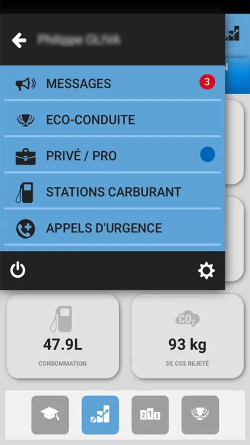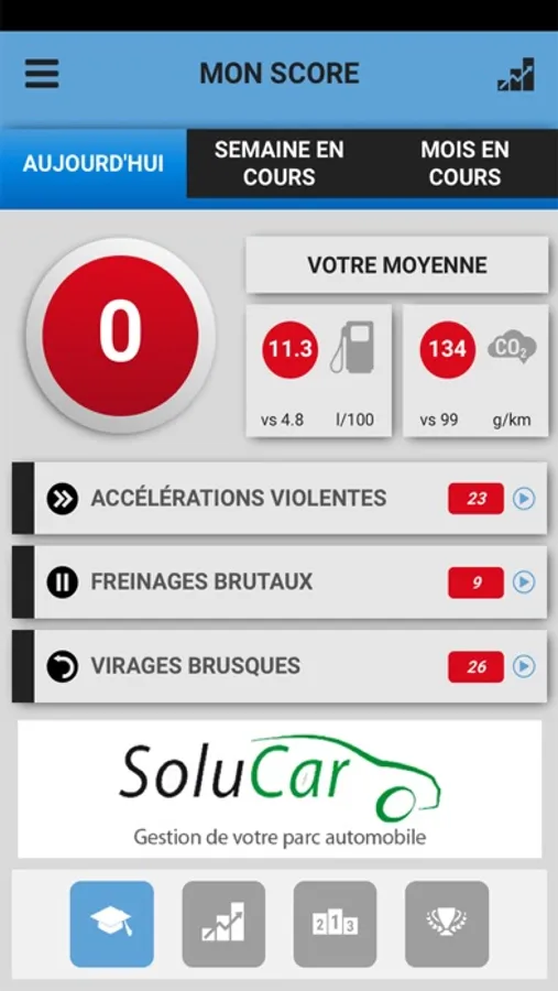 • Eco-Conduite : suivez l’évolution de votre score de conduite, votre classement et les résultats des challenges auxquels vous participez.