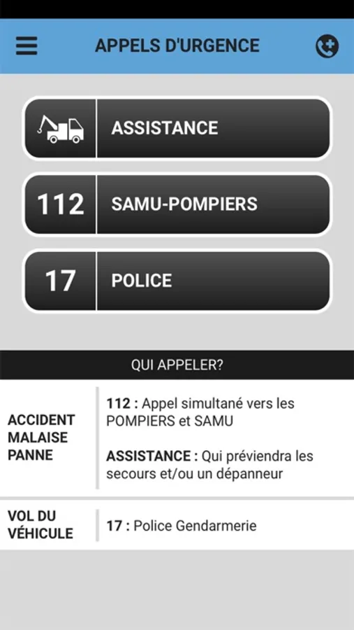 • Appels d’urgence : les services de Police et de secours sont directement accessibles depuis l’application
