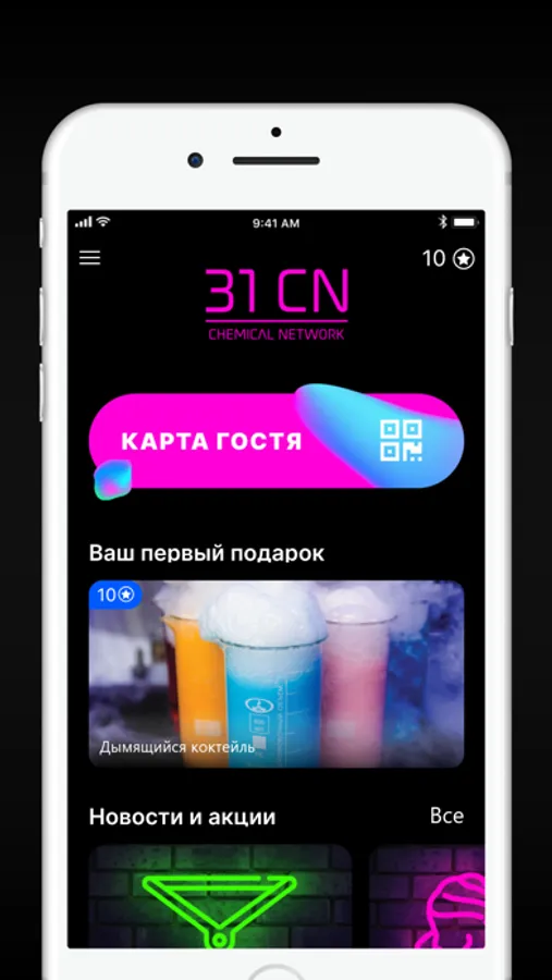 Лаборатория 31; Mendeleev bar; Neon bar. Это изысканный неоновый интерьер с декорациями, уносящими вас в атмосферу научной лаборатории! Вкусные дымящиеся коктейли в химической посуде: колбах и пробирках - фишка нашего бара!