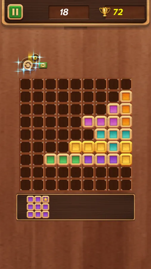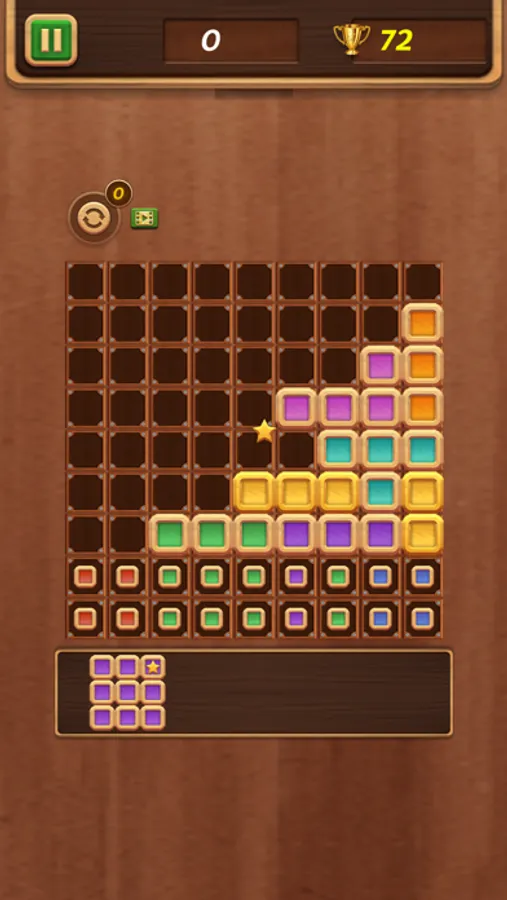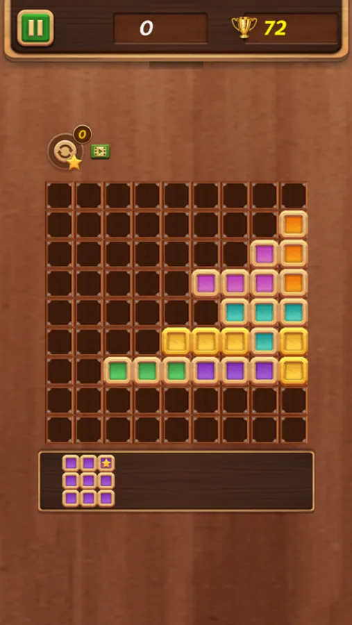 • Try to fit them all in the row or column. Then the block will be clear and you get the point. The game will be over if there are no room for any the shapes below the grid.