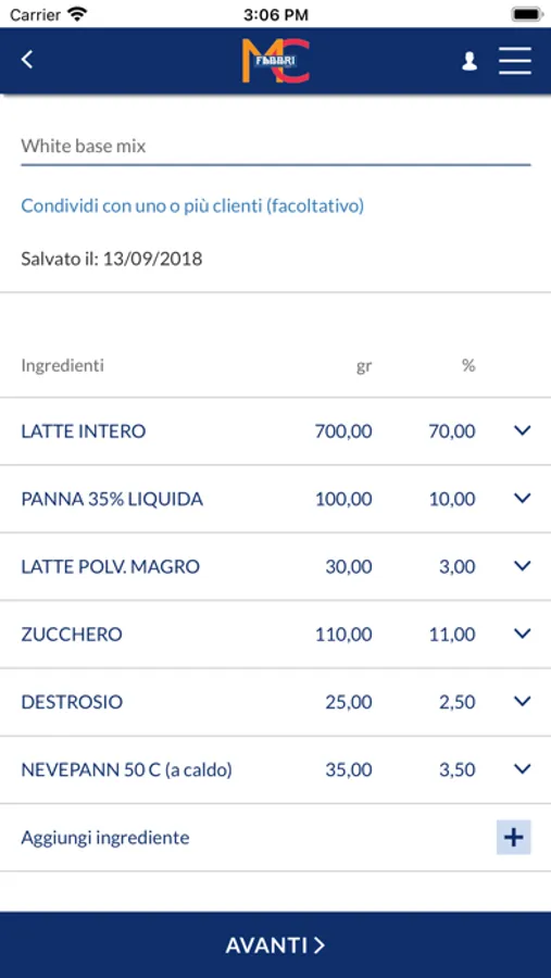 Fabbri MC è la nuova app di Fabbri 1905 creata per aiutare l’artigiano del gelato con produzione propria a realizzare una perfetta bilanciatura e a rendere le sue ricette uniche nel gusto e negli abbinamenti.