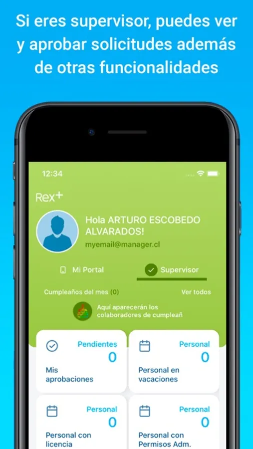 En el caso de un supervisor, también le permite aprobar o rechazar las solicitudes que efectúen sus subordinados.
