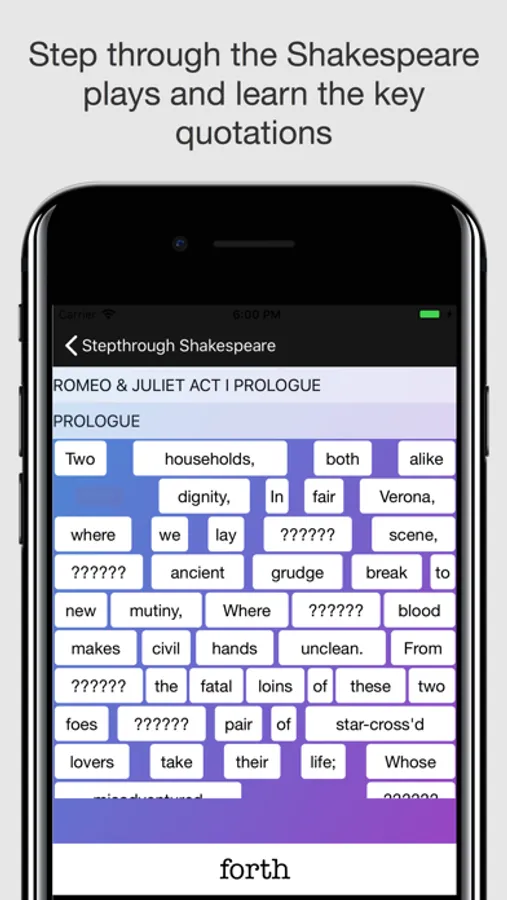 Step through the Shakespeare plays a scene at a time and fill in the gaps to help you learn the key quotations.
