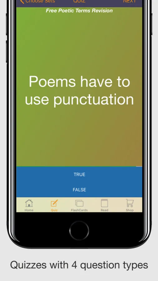 My English Literature GCSE includes a set of questions and cards covering poetic terms, and each question/card set is available by watching a rewarded video.