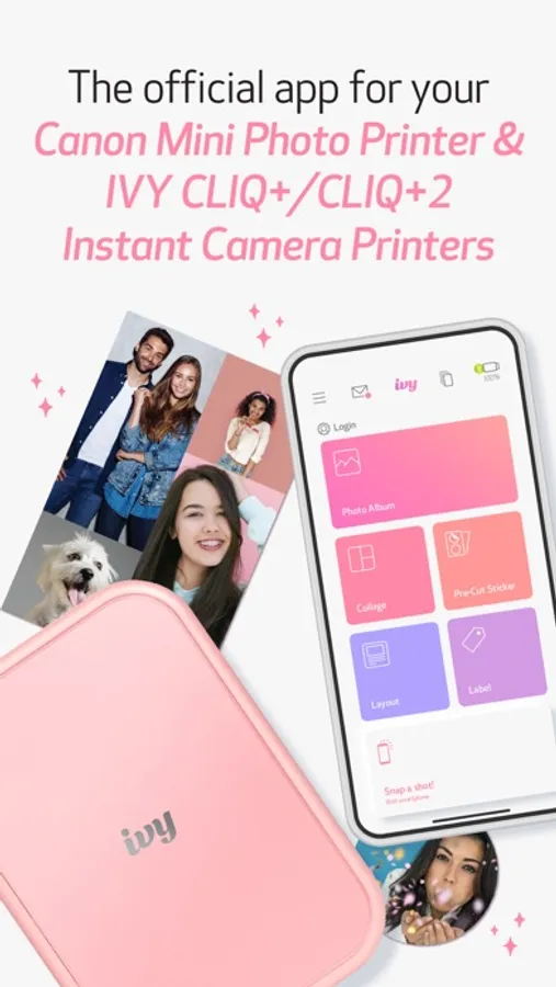 Get started using your Canon IVY Mini Photo Printer and IVY CLIQ+/CLIQ+2 Instant Camera Printers with the Canon Mini Print app. Personalize your photos with stickers, text, frames, filters, and more! Take photos to capture the moment, or access photos from your favorite social and cloud accounts to get creative with and share. When you’re ready, send your masterpiece to be printed and use the 2x3-inch sticker prints to dress up your room, notebook, locker, mirror, desk… well, almost anything!