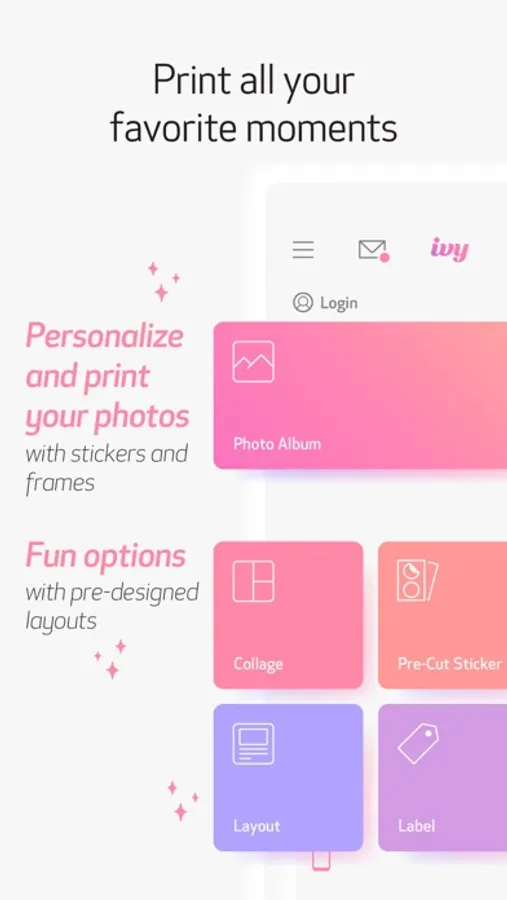 Enjoy these fun features with the Canon Mini Print app. Simply connect to your printer via Bluetooth to get started!