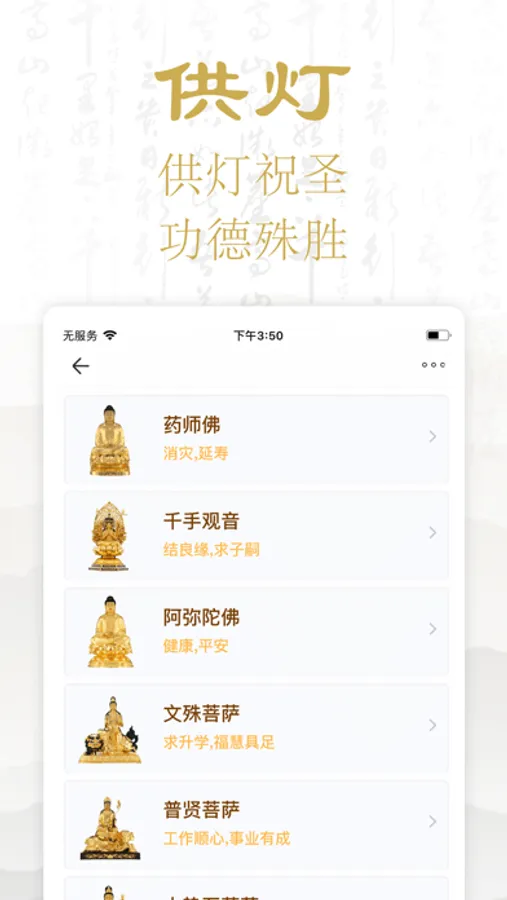 1、供灯礼佛:帮助缘主手机在线诚心礼佛供灯,拜佛祈福许愿,忏悔发愿回向,祈人生福运;