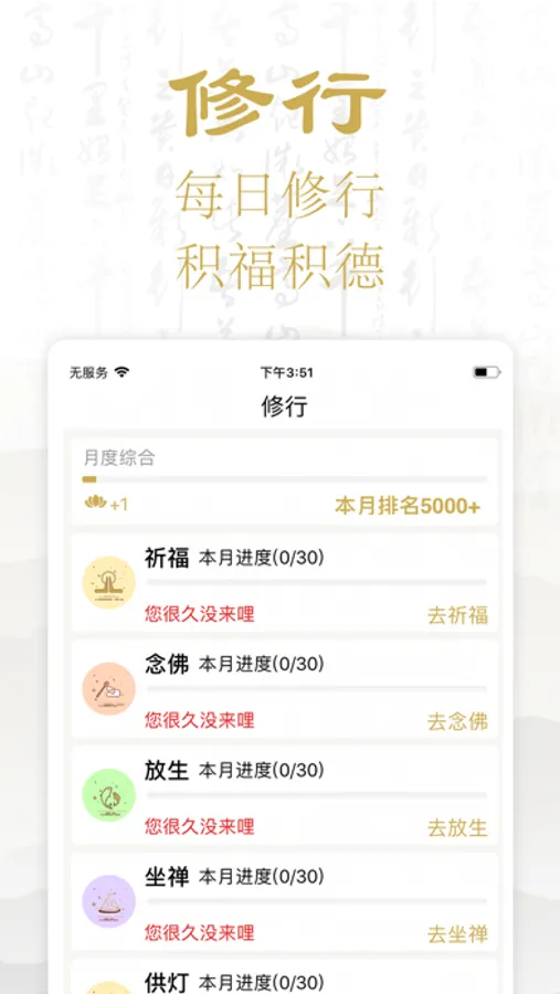 3、坐禅诵经:在线打坐观禅诵经,正念冥想开慧觉,净心参禅通修慧根,回归初心观悟因果;