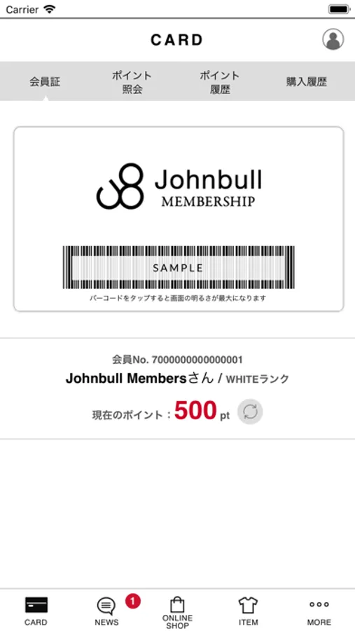 ・会員証バーコード(店頭でご購入の際にレジでご提示ください)