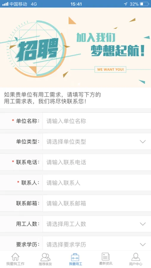 这是一款专业提供免费就业,合作共赢,企业用工服务的APP。