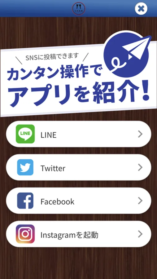 鉄板焼きもんちゃんはSNSを通じてお友達に紹介する事ができます。
