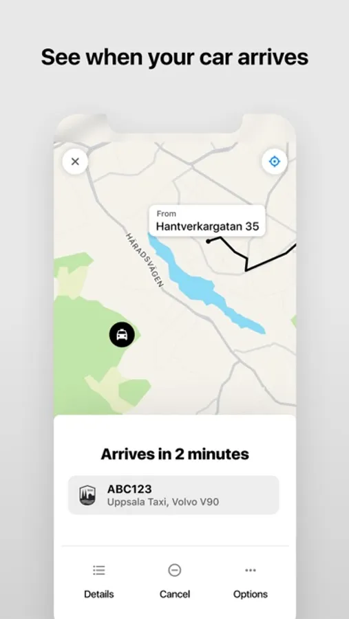 We’ll notify you both when the taxi is on its way and when it has arrived. You can also follow your car on the map.