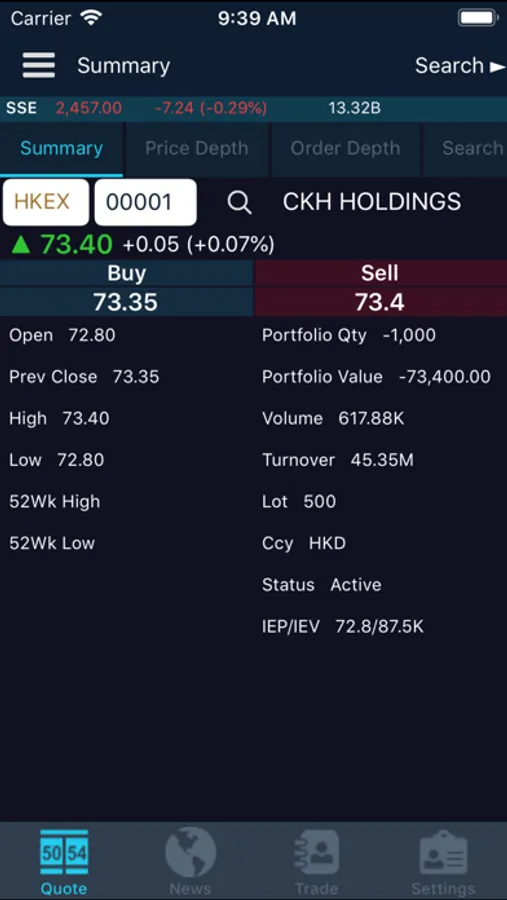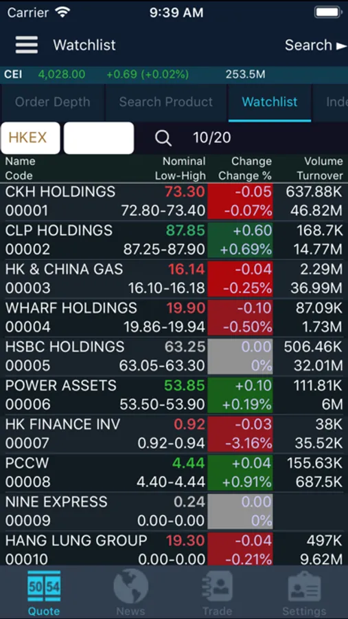 Stock trader and quote for HKEX