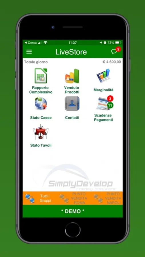 Comodamente dallo smartphone con Live Store è possibile collegarsi da remoto alle proprie attività per visionare velocemente dati di vendita, marginalità, stato delle barriere casse, scadenzario e molto altro.