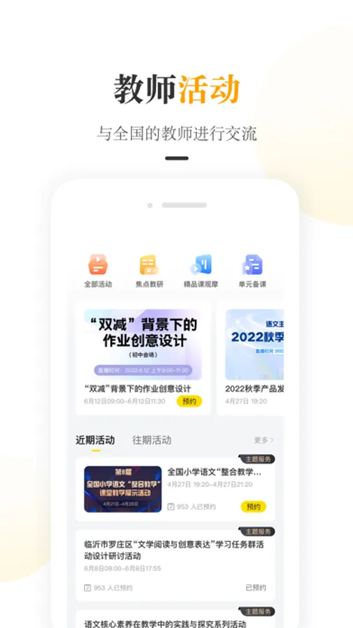 教师活动——线上参与全国各地的教学活动,与全国的老师进行经验交流。