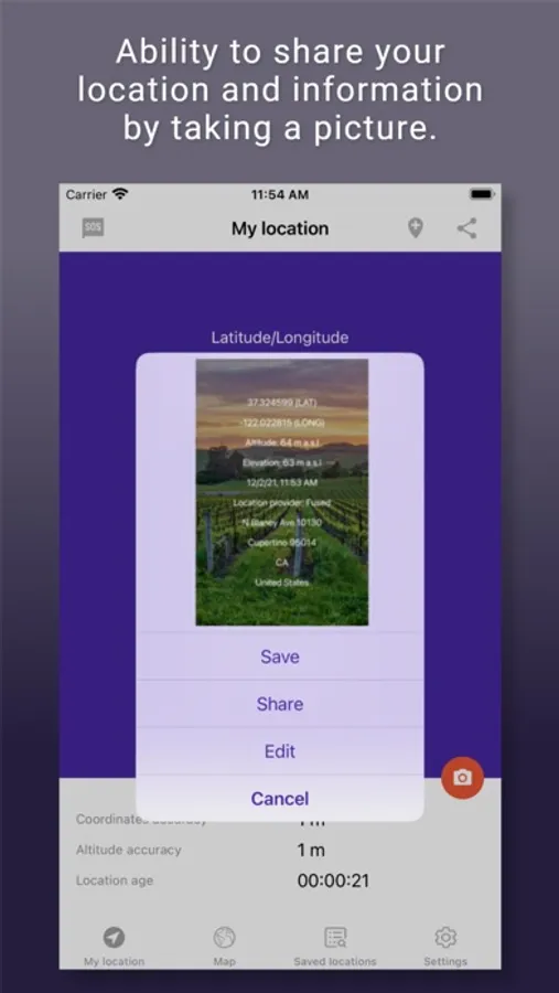 - Use a text message or share on social media or by email, your location information “what is my altitude?” to your friends.