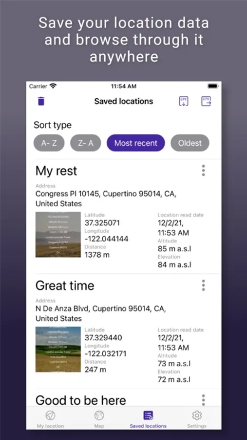 - Save your location data and browse through it anywhere.