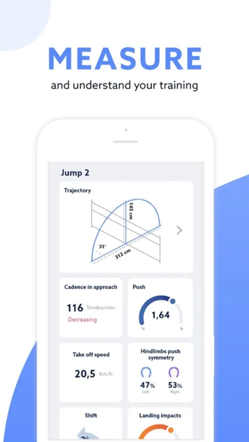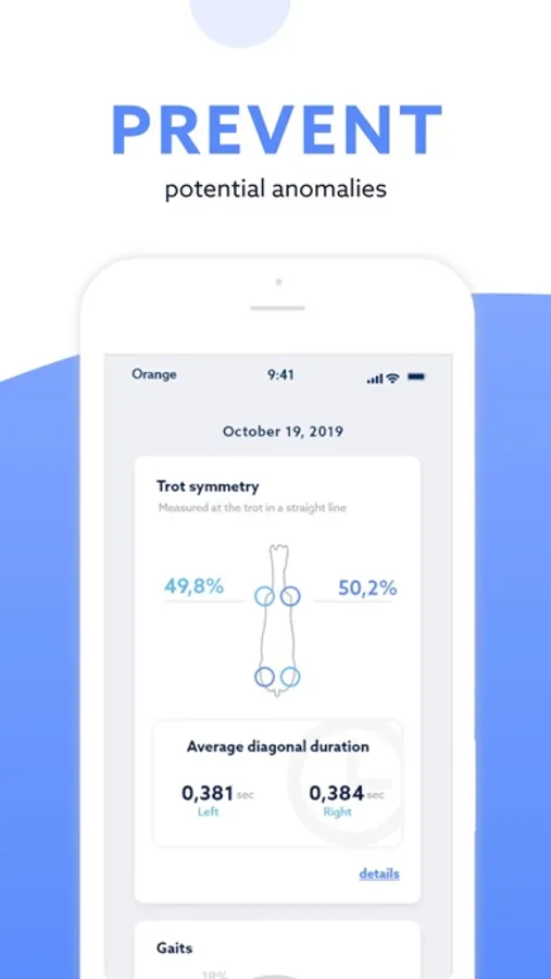 The data are also saved to bring you detailed analysis after your trainingsession, so that you can monitor your horse’s performance and health onthe long run: