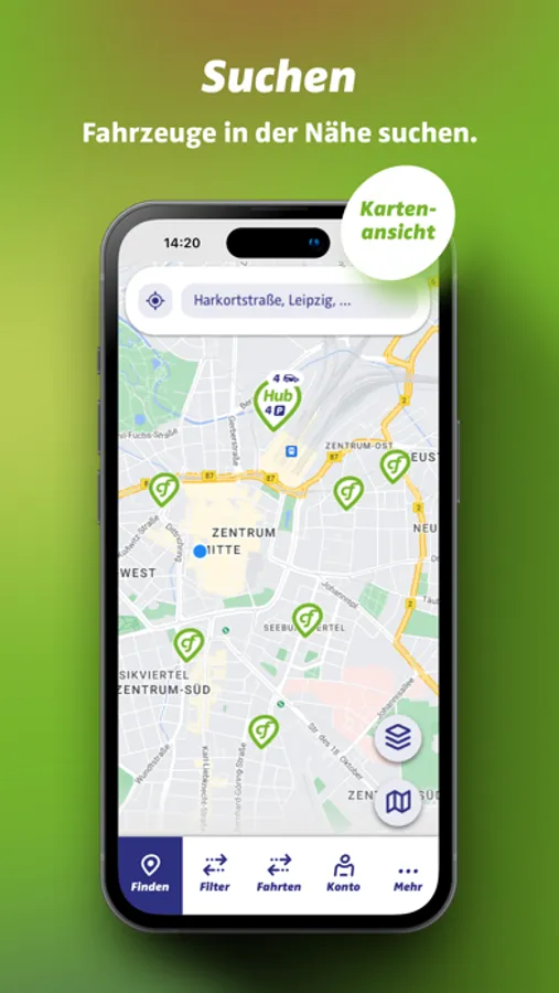 Autos findest du bequem und einfach per Standortsuche. Wagen in deiner Nähe kannst du dir auf der Karte oder als Listenansicht anzeigen lassen.