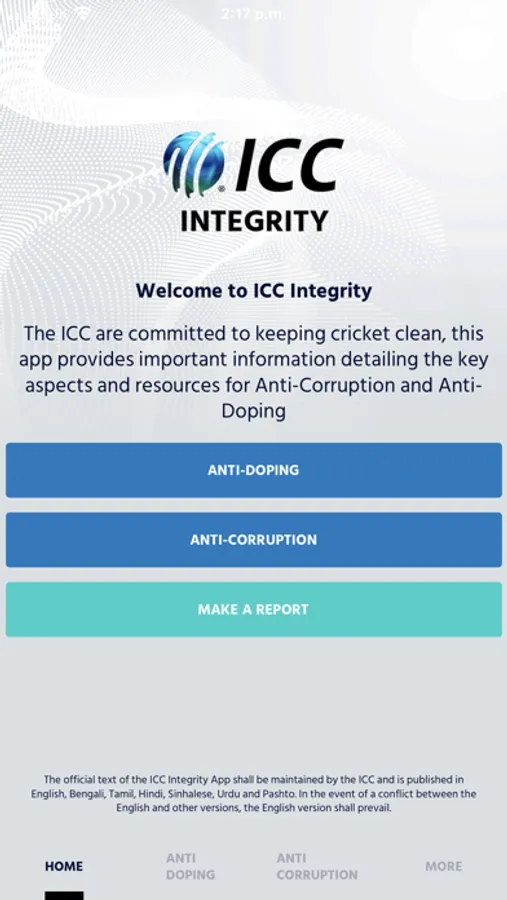 The ICC Integrity App has been developed as a support tool for all cricket Participants (including, without limitation, players, team staff, match-officials, player agents, curators and ICC staff and officials) to protect the spirit and integrity of the game.