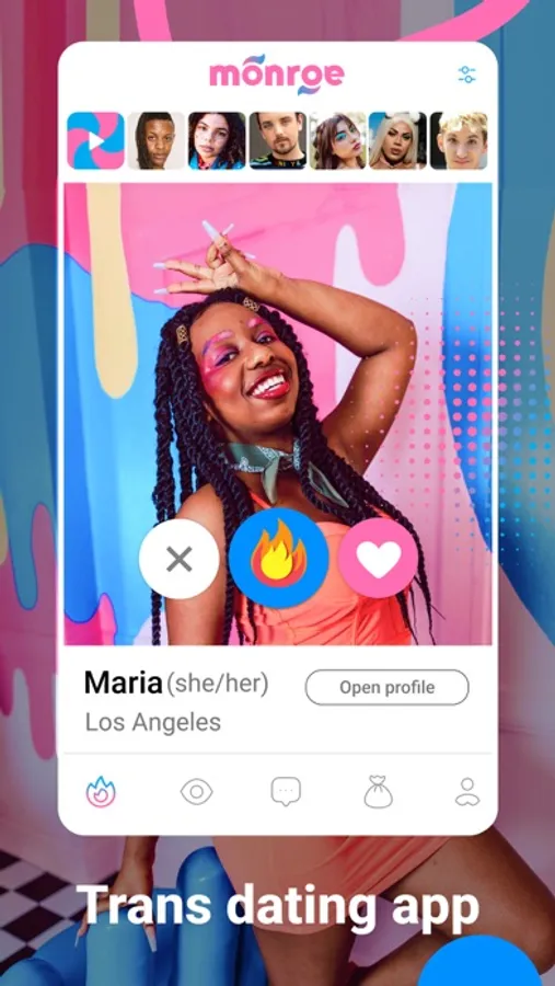Monroe.Dating is a dating app for transgender people. We understand that usually other common dating apps don’t offer any flexible features for transgender community. That's why we’ve built an app that suits your needs. Why should you choose the Monroe Dating app?