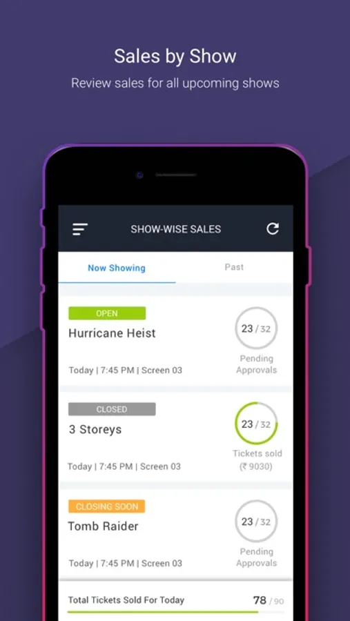 This lightweight app enables the partner to track their ticket sales and revenue real-time based on the bookings received on BookMyShow.