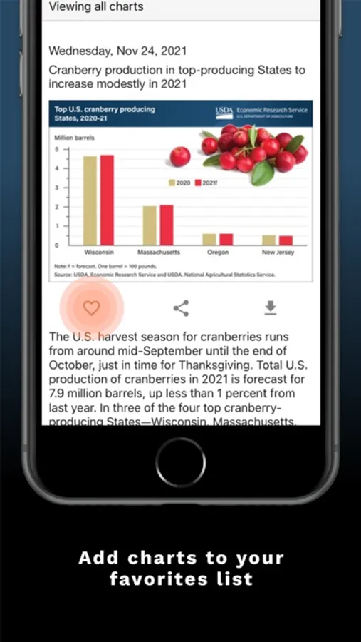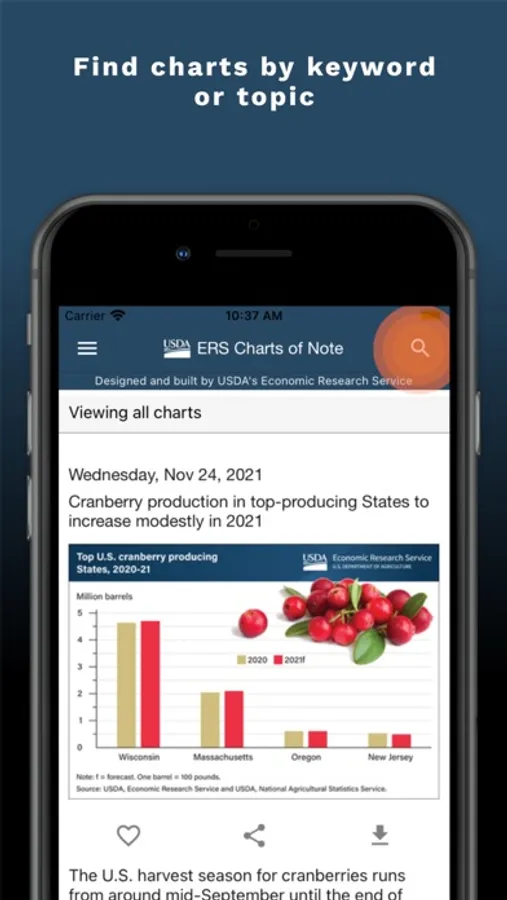 ERS Charts of Note present highlights from ERS research and analysis on key food and agriculture topics in a simple, user-friendly format. Get the latest Chart of Note; explore the range of timely, topical information; follow the links for more details; save and share items of interest; or search the extensive library of charts.