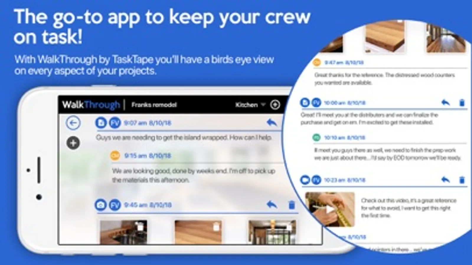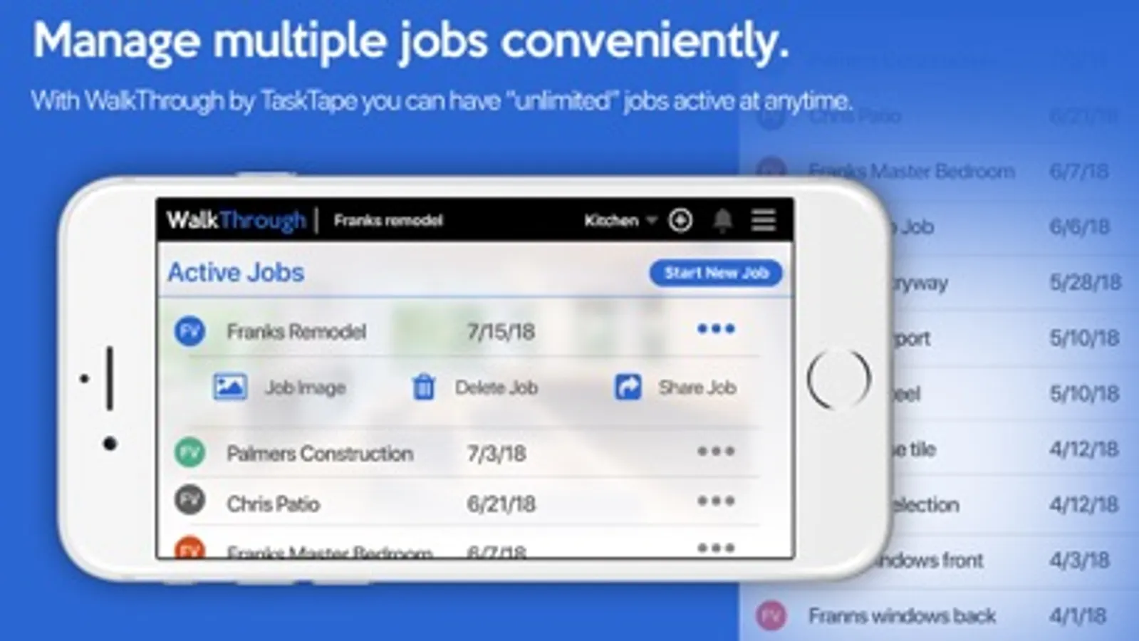 Create your Job, then your Job Areas and TaskViews, put your TaskTapes on your TaskView photos, then put all the details you want in each Tape created. Share the job via email, text, or a PDF with your coworkers, or with your clients for a brilliant new clarity in job definition.