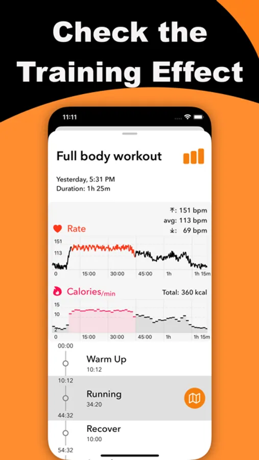 Using the workout timeline inspector you are enabled to analyze the collected data and your performance at the workout section level.