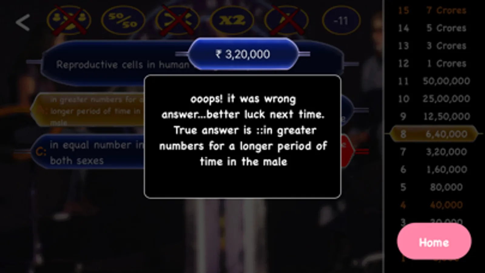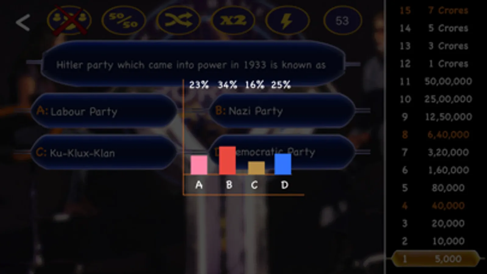 Total 15 Questions in a entire game,Which are from 5,000 RS to 7,00,00,000 RS