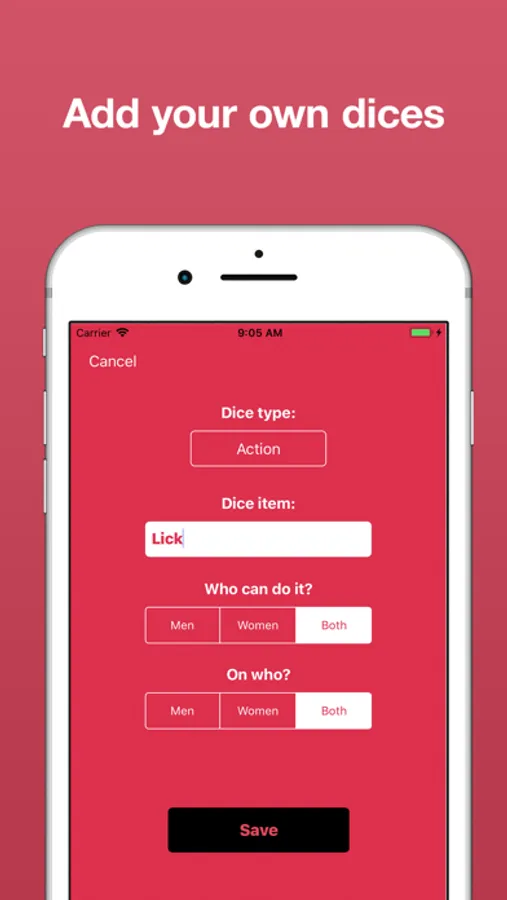 Bored of spin the bottle and truth or dare? Sex Dice is the ultimate game for parties where things are going to get a little bit naughty. Add as many players as you like – and choose whether you agree to play with males, females or both – then customize the dice to include body parts, actions and even bonus dice!
