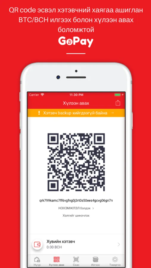 -QR code эсвэл хэтэвчний хаягаа ашиглан Биткойн илгээх болон хүлээн авах боломжтой.