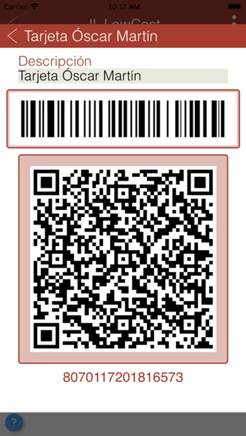 El usuario puede gestionar tarjetas de fidelización de diferentes plataformas. Por cada tarjeta puede: