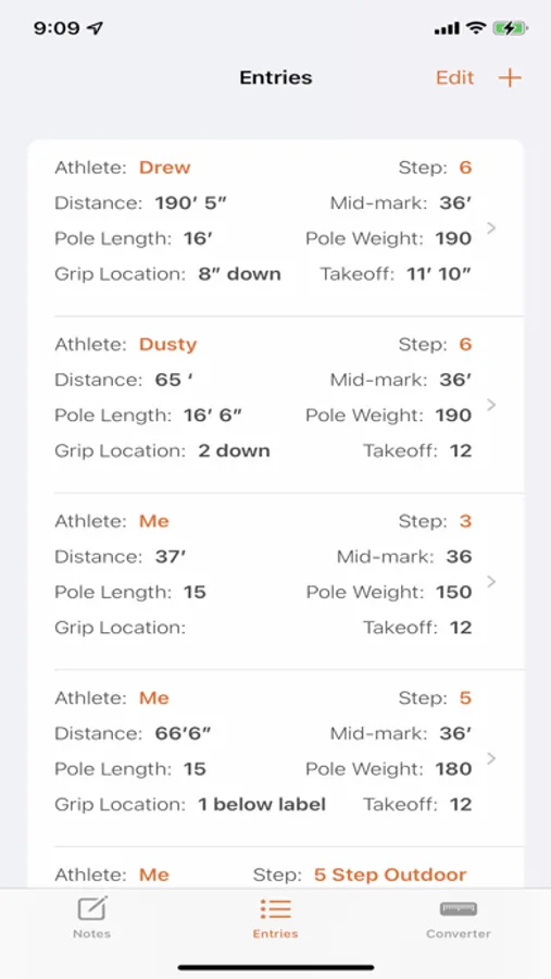 Another key struggle most vaulters face is the tough conversions between Metrics and Imperial marks. With this app, easily convert the two. Conversions are based off of the USATF Pole Vault chart.