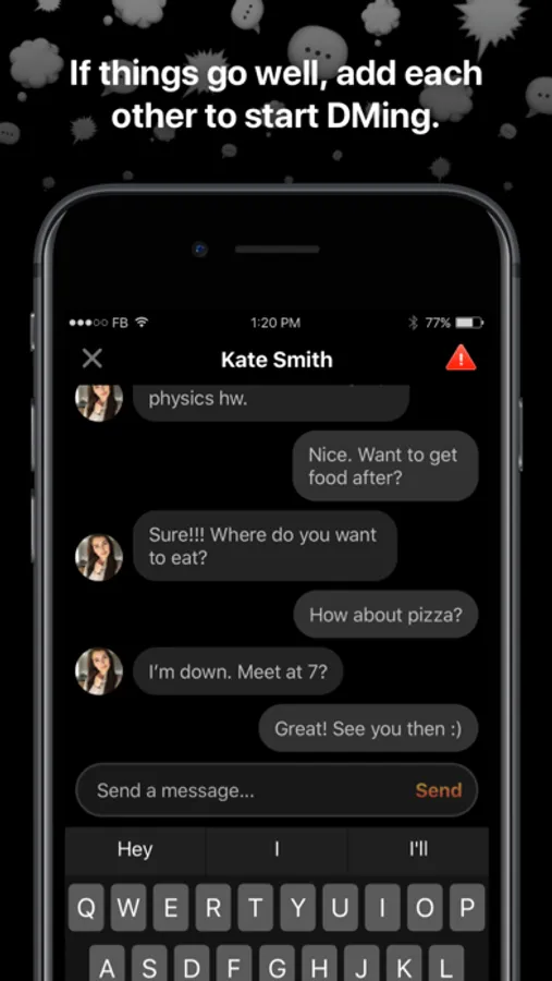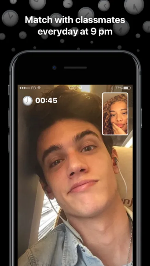 Each night at 9 pm, open Flare to match with new people from your school. We’ll suggest a funny topic and you’ll have 60 seconds to video chat with your match. If you like each other, add them as a friend to keep in touch.