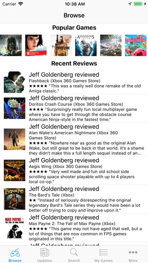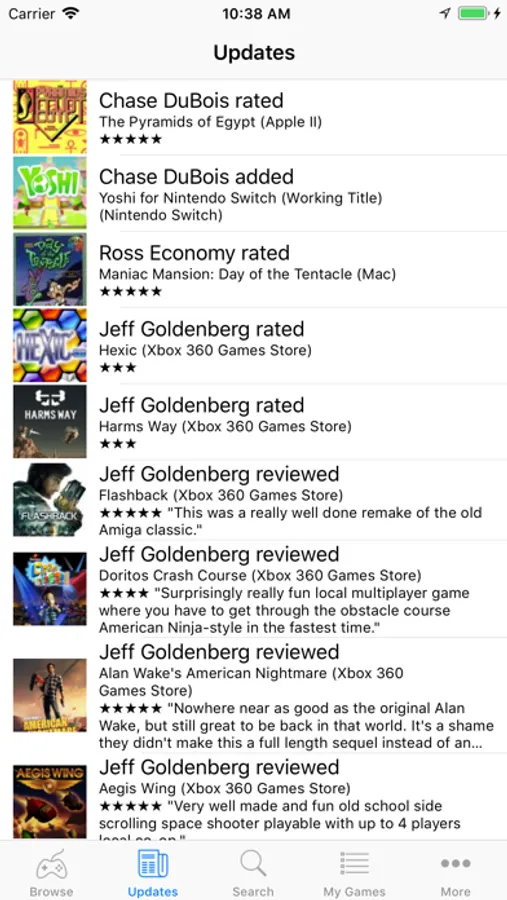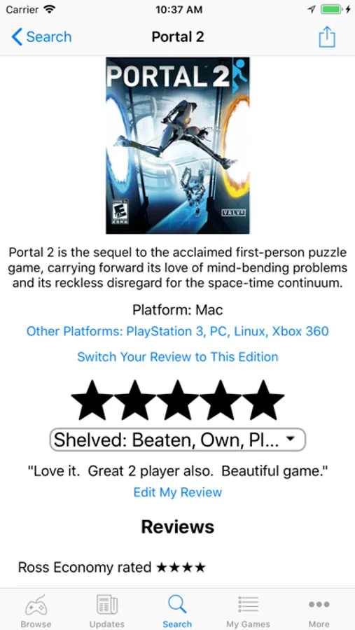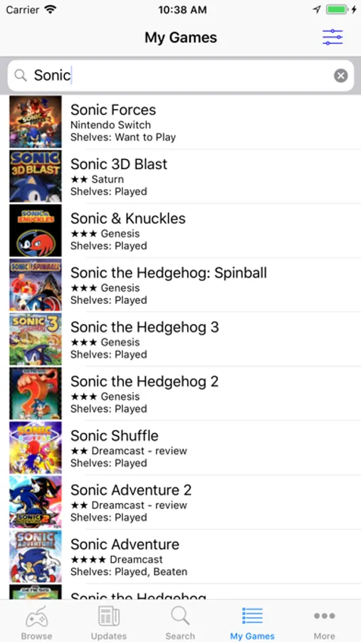 * Organize your games on 6 basic 'shelves' - want to play, played, beaten, currently playing, favorites, own