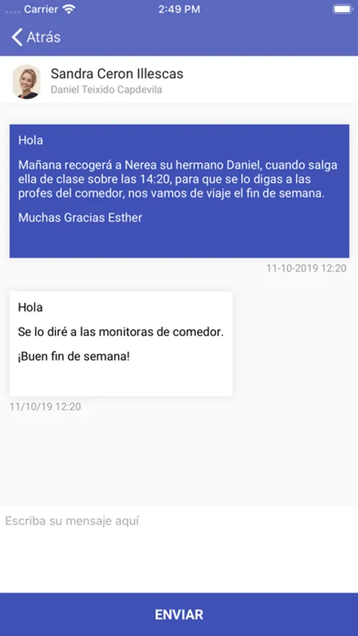 Desde esta app las familias y alumnos podrán comunicarse con los profesores y recibir información de los alumnos del mismo modo que lo hacen a través de la página web. Como mejora en este nuevo portal de comunicaciones, entre otras, podrán recibir notificaciones en tiempo real sobre novedades existentes.