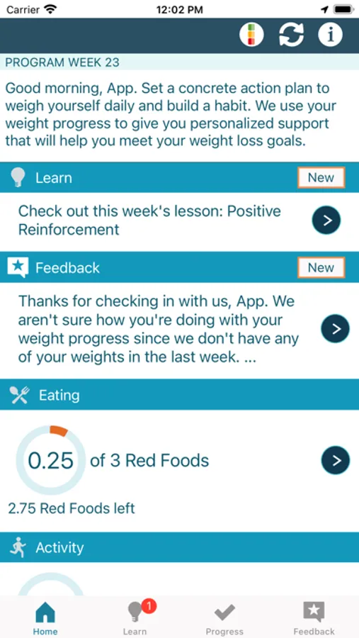 Nudge is a weight management app for young adults that allows users to self-monitor their diet and track their physical activity and weight. This program focuses on healthy eating, exercise and behavior change with personalized feedback and motivational tools. Nudge includes educational lessons, resources, multimedia content, recipes, and location-based, tailored messaging. Personalized feedback is given based on user performance. Users connect their Fitbit account to Nudge. Users may opt out of data collection at any point.