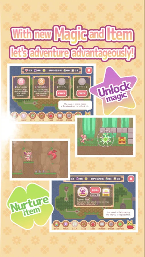 Let's aim at the goal of each stage while defeating monsters and collecting items.