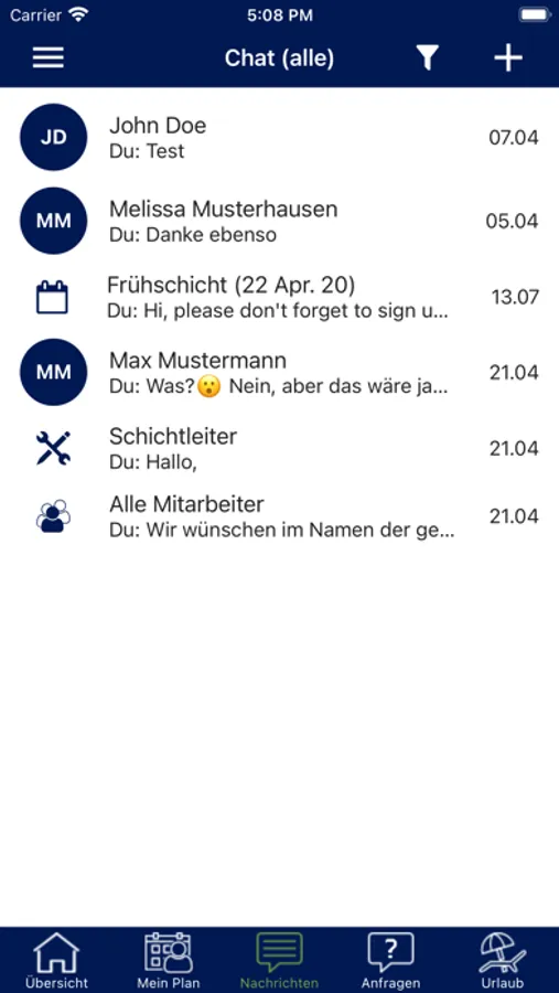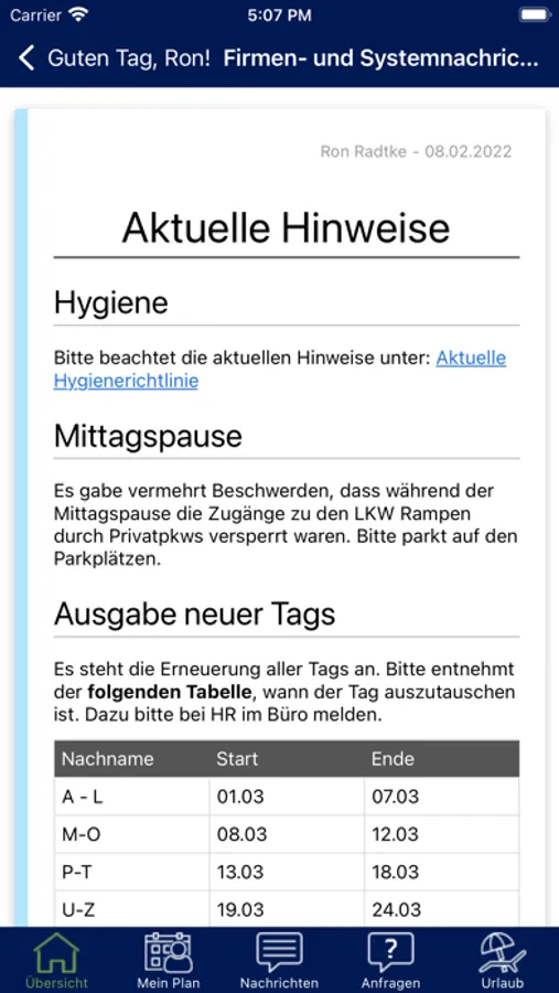 · Informationsaustausch mit und unter den Mitarbeitern durch integriertes Nachrichtensystem