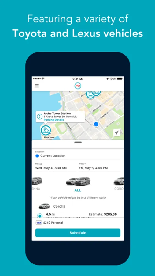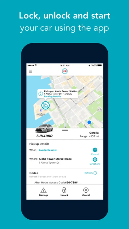 RESERVE - Open the Hui app and select the location, date and time for your reservation. Then, view available vehicles near you.