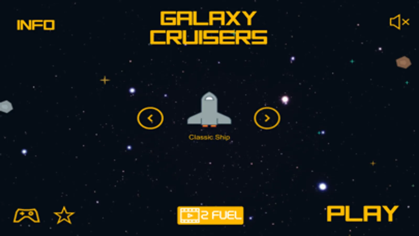 Tap left and right on the screen to steer the ship in that direction. Collect as much fuel as possible to unlock different ships. All of the ships are better than the other and contain a specific ability. Make sure to avoid the meteors flying in all directions around you. Time your actions, move around carefully, and become the galaxy cruising master!