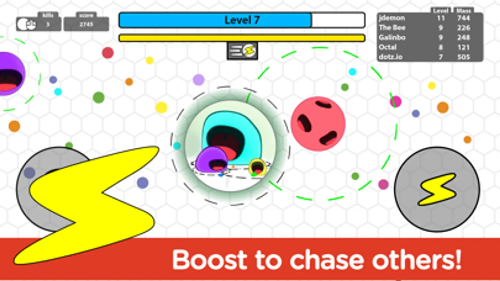 Enjoy the easy to play but hard to master gameplay. Choose your strategy: Are you a dragger or a rusher? IO game of survival in an endless action arena is what dotz.io is!